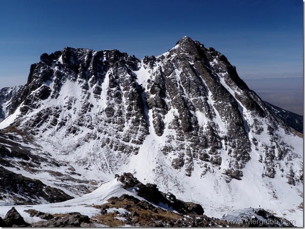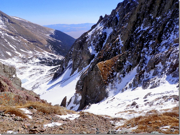 From here we could see the Needle rising from the ridge above us and some spectacular lines off the peak just to the south. Beyond those, the San Luis valley sprawled out for as far as the eye could see. The Sangres are unique in that they practically jut out from a valley floor on both sides and offer some cool views of the valley below.
